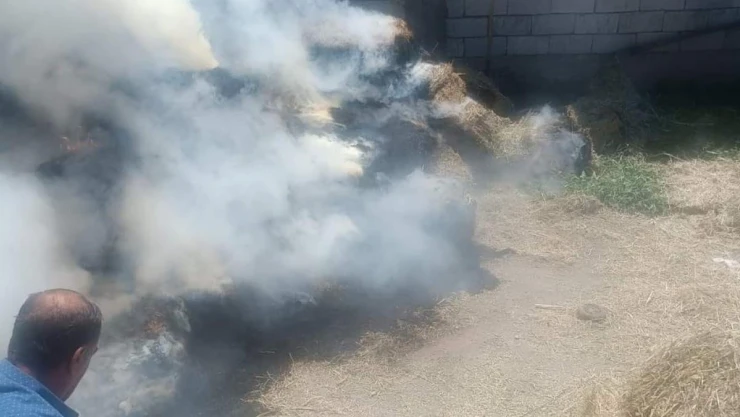 Iğdır'da yüzlerce saman balyası küle döndü
