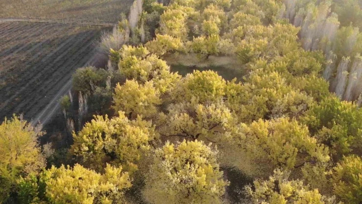Iğdır'ın kayısı bahçelerindeki sonbahar güzelliği havadan görüntülendi