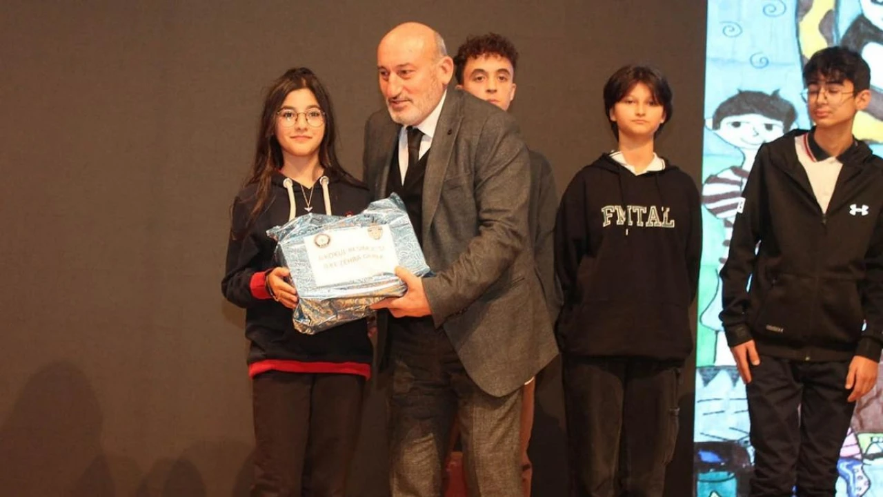 Geri Dönüşüm, Atık ve Çevre Temizliği konulu yarışmanın ödül töreni Bağcılar Belediyesi Başkanlık Salonu’nda yapıldı. Kategorisinde birinci olan Özel Marmara Evleri İhlas Fen Lisesi öğrenci Meryem Şekerci’ye ödülünü İstanbul İl Emniyet Müdürü Zafer Aktaş verirken, ikinci olan Özel Marmara Evleri İhlas Ortaokulu öğrencisi Sare Görenoğlu da ödülünü Bağcılar İlçe Milli Eğitim Müdürü Mustafa Yılmaz’ın elinden aldı.