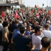 Çevik kuvvet polisi öfkeli kalabalığı izin vermezken, kısa süreli bir arbede yaşandı. Arbededen sonra kalabalık açıklama yapıp dağıldı.