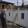 Köye getirilen konteyner, vinç yardımıyla rüzgardan hasar gören evin bahçesine konuldu. Konteynerin yağmur ve karda üzerinde hasar görmemesi için üzerine köylülerin yardımıyla çatı da yapılıyor.