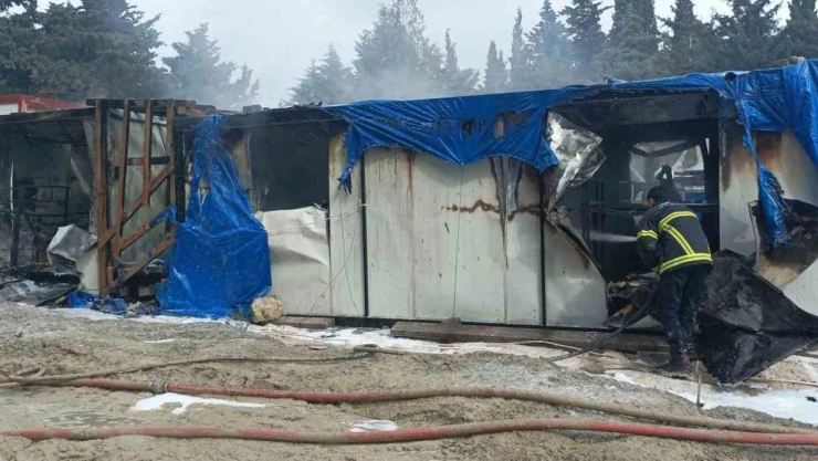 İşçilerin kaldığı konteynerler alevlere teslim oldu