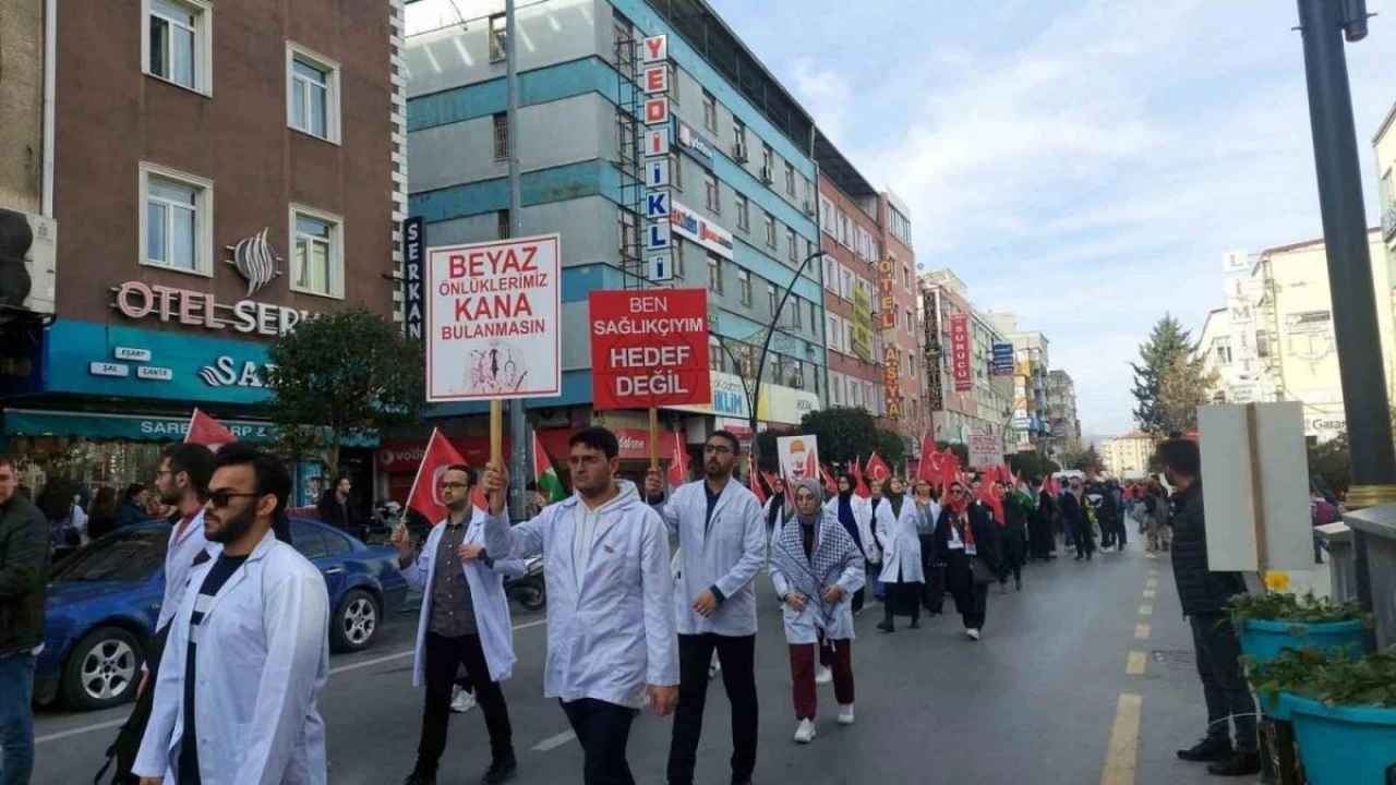 Isparta'da hekimler ve sağlık çalışanları beyaz önlükleriyle Filistin'de yaşanan saldırılara dikkat çekerek Sessiz Yürüyüş gerçekleştirdi.