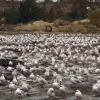 İstanbul’da etkili olan şiddetli lodos kuşları da vurdu. Şiddetli lodos nedeniyle uçamayan yüzlerce martı Kazlıçeşme’de boş bir araziye sığındı.