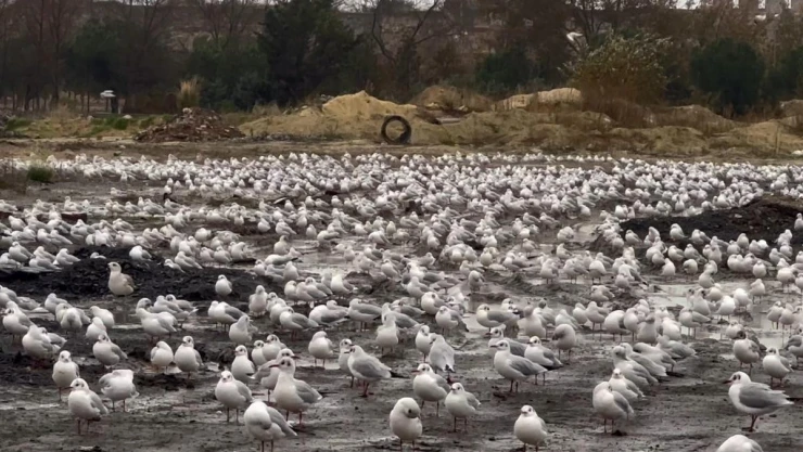 İstanbul'da etkili olan şiddetli lodos kuşları da vurdu. Şiddetli lodos nedeniyle uçamayan yüzlerce martı Kazlıçeşme'de boş bir araziye sığındı.
