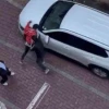Şahıslardan birisi sinirlerine hakim olamayarak içerisinde sürücüsü bulunan park halindeki aracı yumrukladı. Araç sürüsünün de kavgayı ayırmak için arabasından indiği görülürken, yumruk darbelerinin sonucunda aracın kaputunda göçük meydana geldi. O anlar vatandaşın cep telefonu kamerası tarafından kaydedildi.