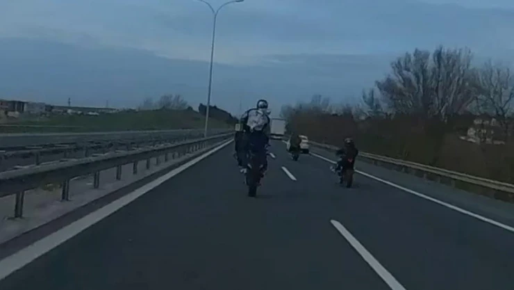 Hafta sonu İstanbul’un farklı noktalarında kaydedilen görüntülerde, plakaları kapalı motosiklet sürücülerinin tek tekerleklerini kaldırarak veya farklı akrobasi hareketleri yaparak yolculuk yaptıkları tehlikeli anlar görüldü. Çatalca yolu ve Kuzey Marmara Otoyolu’nda çekilen görüntülerde plakası kapalı olan farklı motosiklet gruplarının otoyolda tek tekerlek üzerinde seyrederek veya makas atarak hem kendi canlarını hem de trafik güvenliğini tehlikeye attıkları görüldü.