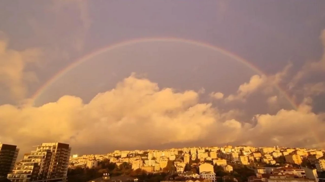 Meteoroloji Genel Müdürlüğü tarafından yapılan uyarıların ardından İstanbul’da sağanak yağış etkili oldu. Yağış sonrasında ortaya çıkan gökkuşağı renkli görüntüler oluşturdu. Gökkuşağı en çok Küçükçekmece, Beylikdüzü, Büyükçekmece ve Esenyurt ilçelerinde belirginleşti. O anlar, hayranlıkla izleyen vatandaşlar tarafından cep telefonu kamerası ile kaydedildi.