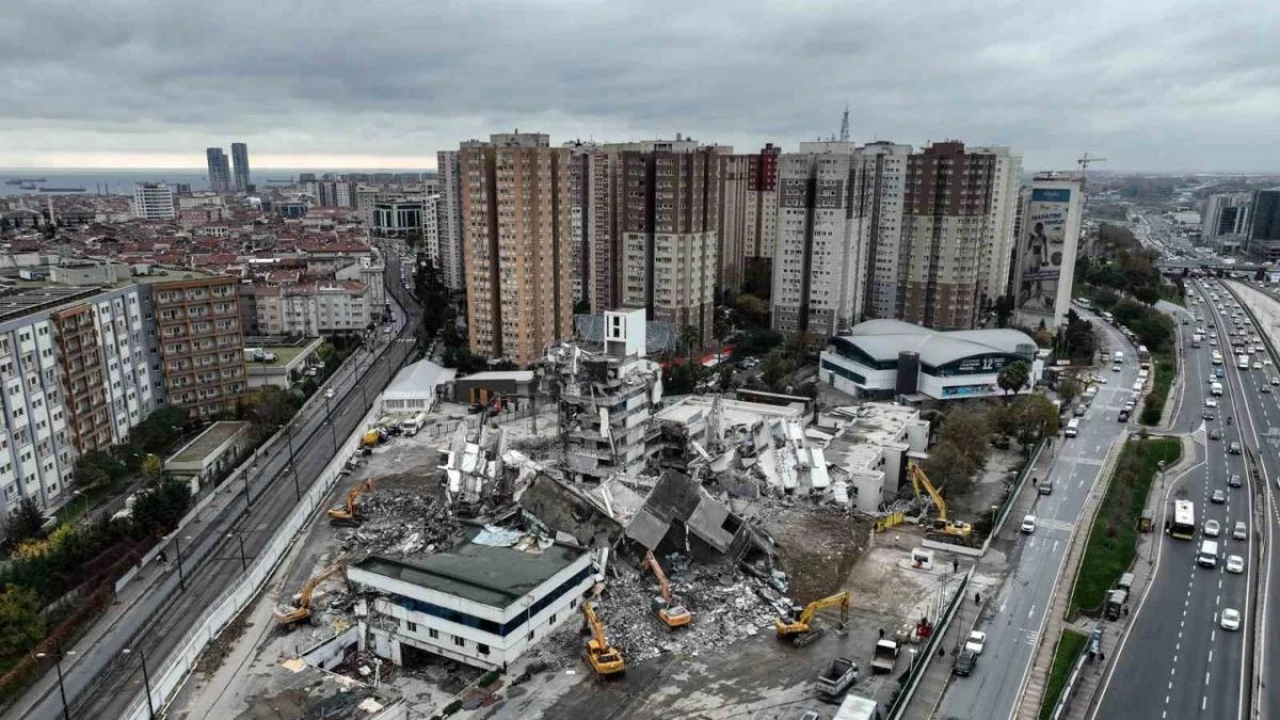İstanbul'un 33 yıllık E-5 manzarası değişiyor, iki binanın yıkımı havadan görüntülendi