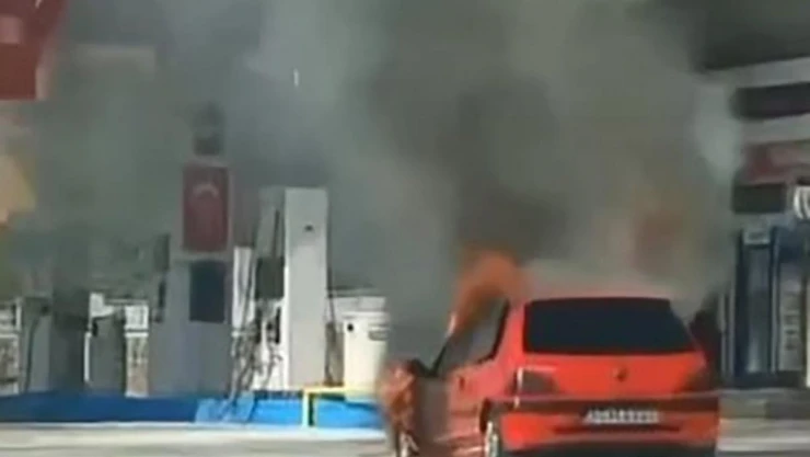 İstasyonda akaryakıt alan otomobil alev aldı