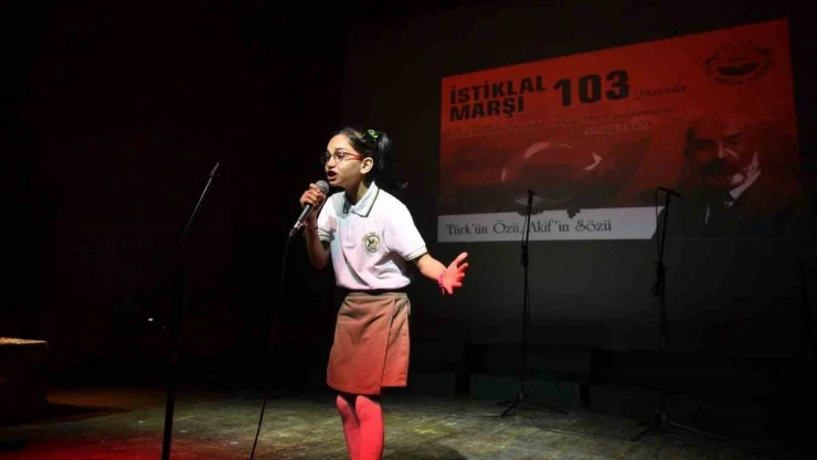 Edirne’de 12 Mart İstiklal Marşı’nın kabulünün 103. yılı ve Mehmet Akif Ersoy’u Anma Günü dolayısıyla program düzenlendi. Programda yarışmalarda dereceye giren öğrencilere ödülleri verilirken, İstiklal Marşı okuma yarışmasında birinci olan ilkokul öğrencisi Zehra Sare Sorak’ın sahnedeki performansı büyük alkış topladı.