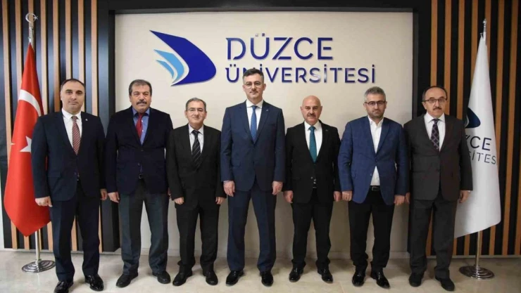 Bursa Teknik Üniversitesi Rektörü Prof. Dr. Naci Çağlar ve beraberindeki heyet, Düzce Üniversitesi Rektörü Prof. Dr. Nedim Sözbir'i ziyaret etti.