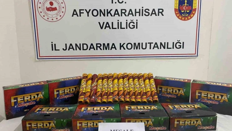 Afyonkarahisar'da jandarma tarafından izinsiz havai fişek ve meşale zaten bir züccaciye mağazasına yapılan baskında 13 kutu içerisinde 118 adet meşale ele geçirildi.
