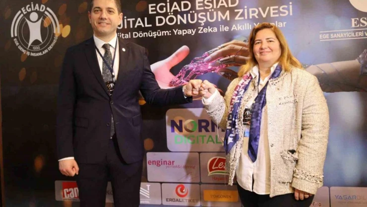 EGİAD ve ESİAD iş birliğinde düzenlenen Dijital Dönüşüm Zirvesi'nde dijital dönüşümün önemi, sunduğu fırsatlar ve verimlilik artışı, özellikle yapay zeka gibi konular ele alındı.