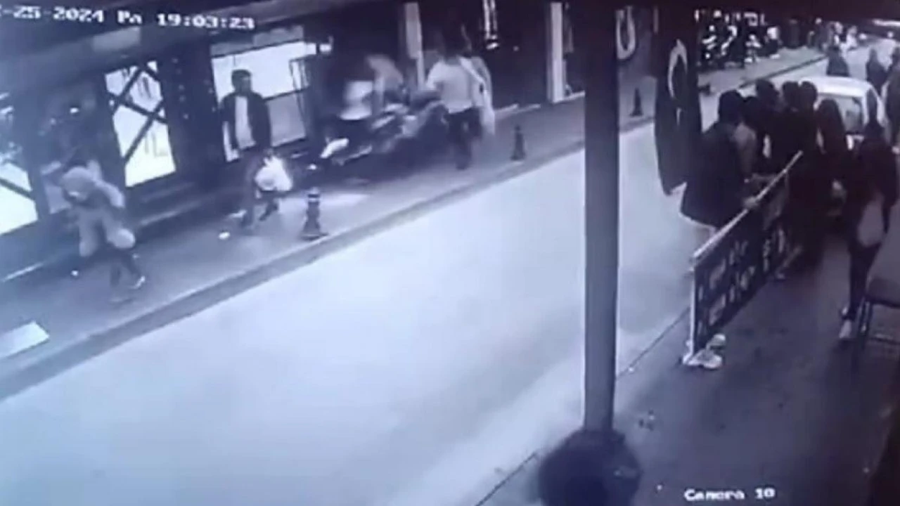 Kaza çevredeki iş yerlerinin güvenlik kameralarına yansıdı. Görüntülerde motosikletin kaldırımda yürüyen 5 kişiye çarptığı ve çarpmanın etkisiyle yayalar ile motosiklet sürücüsünün etrafa savrulduğu görülüyor.