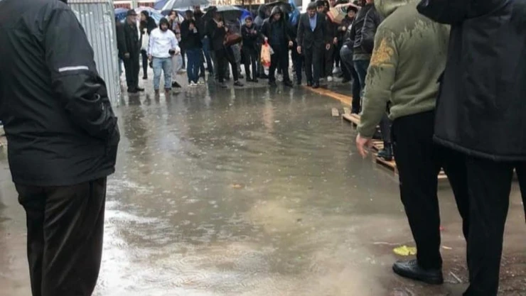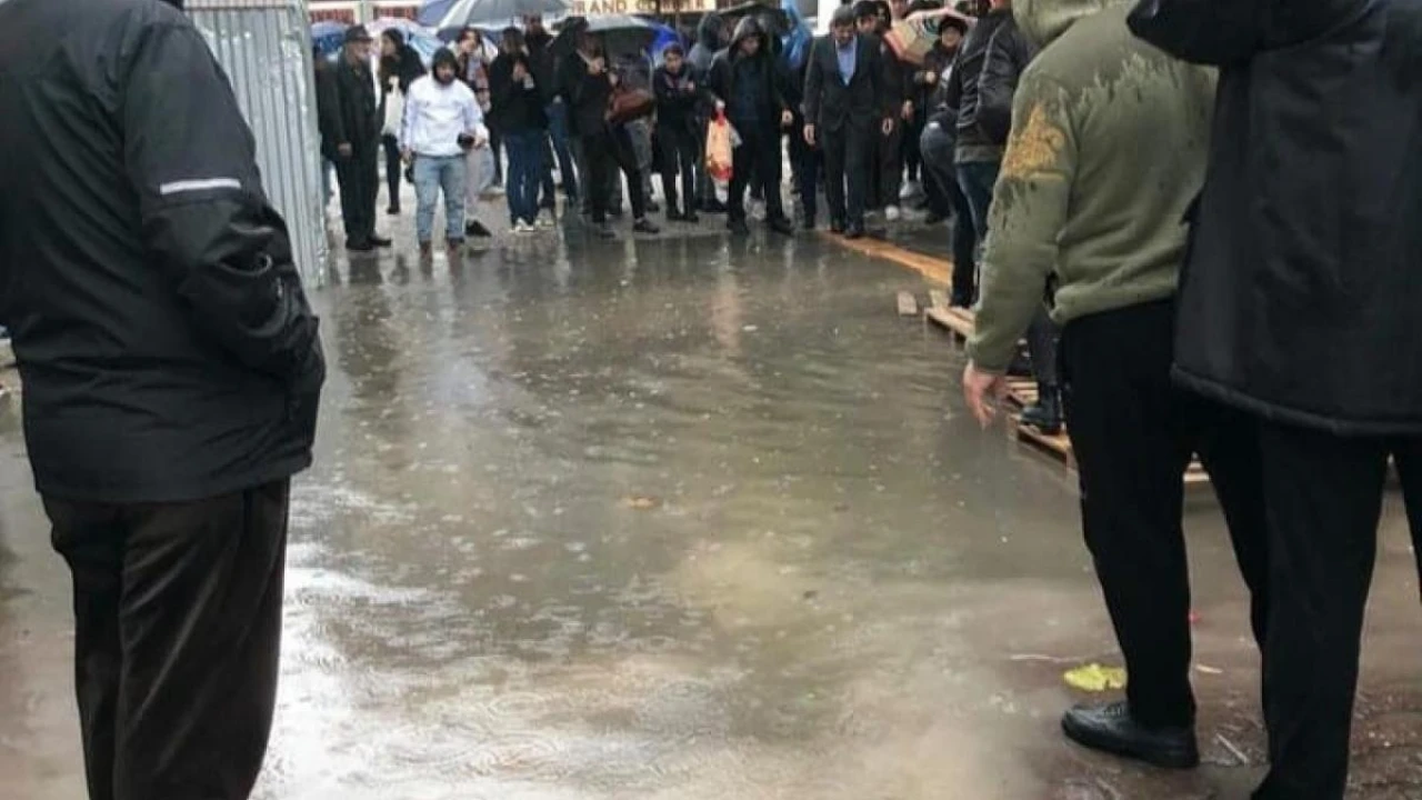 Basmane Gar çıkışında oluşan su birikintisi nedeniyle karşıya geçemeyen vatandaşlar ise çareyi tahtadan set yapmakta buldu. Set üzerinden tek tek geçen vatandaşlar, zorlukla yolun karşısına geçti.
