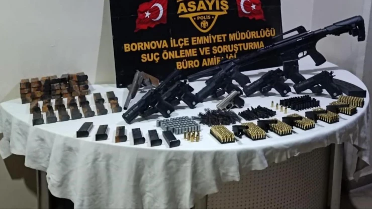 İzmir’de silah imal edip yasadışı bir şekilde ticaretini gerçekleştiren suç örgütüne yönelik, Bornova İlçe Emniyet Müdürlüğü Suç Önleme ve Soruşturma Büro Amirliği ekipleri çalışma gerçekleştirdi. Yapılan çalışmalarda, S.E. ve N.Y. adlı iki şüphelinin Pınarbaşı bölgesinde yasadışı silah imalatı ve ticareti yaptığı bilgisi edinildi. Polis ekipleri tarafından belirlenen iki ayrı adreste yapılan aramalarda, çok sayıda ruhsatsız tabanca, tabanca imal etmeye yarayan malzemeler, tabancalara ait fişek ve bir pompalı tüfek ele geçirildi.