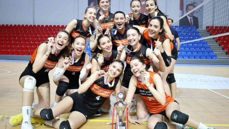 İzmir Ekonomi Üniversitesi (İEÜ) Kadın Voleybol Takımı, bu yıl 8 üniversitenin katıldığı İzmir Bölge Müsabakalarını namağlup şampiyon olarak tamamladı. Geçtiğimiz aralık ayında erkek basketbol takımıyla şampiyonluk coşkusu yaşayan İzmir Ekonomi, aynı başarıya kadın voleybol takımıyla da ulaşarak 'çifte kupayla' spora damgasını vurdu.