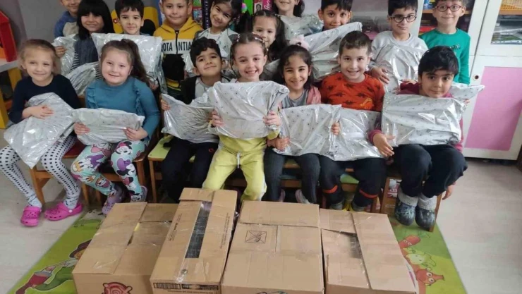 ‘İzmir’den Hatay’a Gönül Köprüsü’ projesiyle İzmirli öğrenciler, Hatay’da öğrenim gören arkadaşları için okullara atkı, bere ve oyuncak gönderdi. Proje kapsamında harekete geçen İzmirli öğrenciler; hazırladıkları atkı, bere ve oyuncakları Hataylı depremzedelere ulaştırdı. Bergama Zübeyde Hanım Ortaokulu anasınıfı öğrencileri 6 Şubat depremiyle sarsılan Hatay’ın Kırıkhan ilçesi İçada Köyü’nde bulunan anasınıfı öğrencilerine boya seti, kitap ve oyuncak gönderdi.