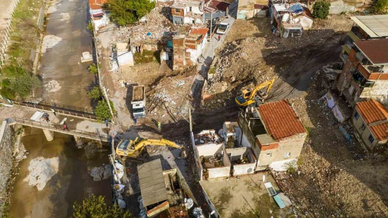 İzmir Büyükşehir Belediyesi, 2026 yılında ev sahipliği yapacağı Botanik EXPO alanı olarak belirlenen kentin kanayan yarası Yeşildere'de yıkım çalışmalarını başlattı. Savaştan çıkmış gibi kötü görüntüsüyle dikkat çeken bölgede, Kültürpark'ın üç katı büyüklüğünde bir yeşil alanın kente kazandırılacağı dev proje kapsamında, kamulaştırması tamamlanan 76 binanın yıkımı tamamlandı. Başkan Tunç Soyer, '50 futbol sahası büyüklüğündeki yaklaşık 400 dekar alan, doğayla ve insan tabiatıyla uyumlu yeşilin en güzel rengiyle örülecek' dedi.