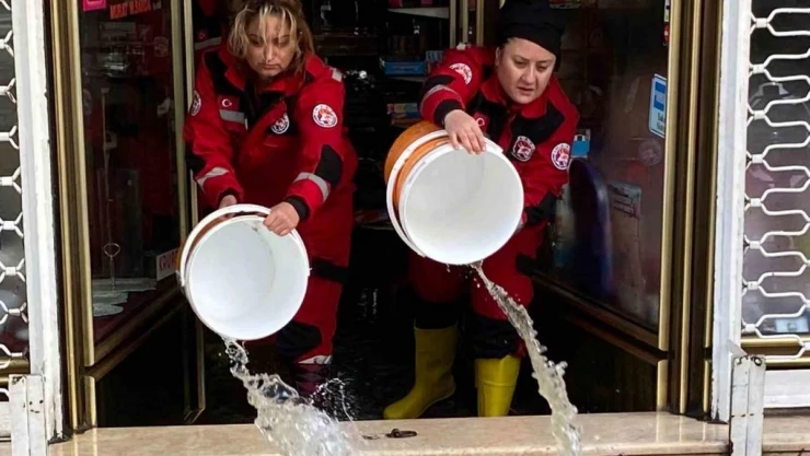 İzmir’de etkili olan yoğun yağışın ardından Kıbrıs Şehitleri Caddesi’ndeki esnaf, saatler sonra normale dönme çalışmalarına başladı.