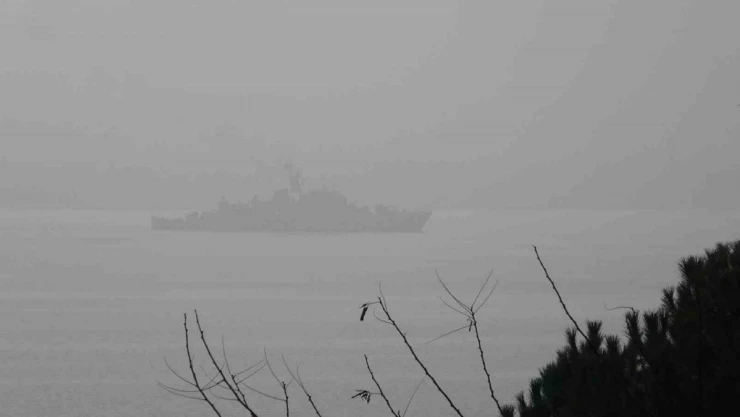 İzmit Körfezi'nde sabahın erken saatlerinden itibaren sis etkili oldu. Sis sebebiyle bazı gemilerin adeta silueti göründü.