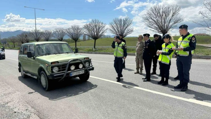 Trafik denetimine, İl Jandarma Komutanı Kıdemli Albay Mehmet Kasım Ermiş, Trafik ve Asayiş ekipleri katıldı.
