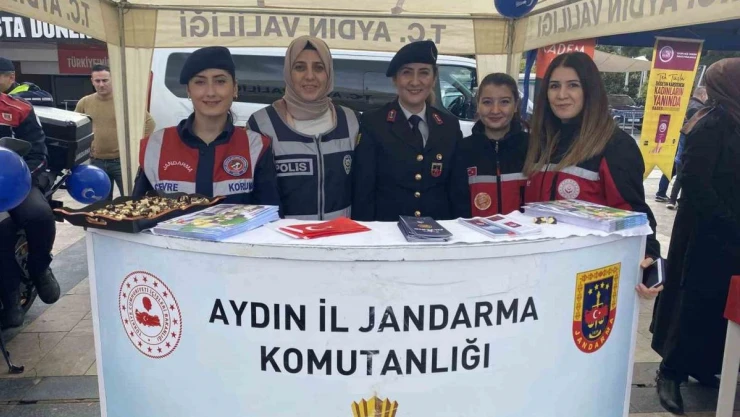 Aydın İl Jandarma Komutanlığı Aile içi şiddetle Mücadele Kısım Amirliği, Çevre Timi ve Efeler İlçe Jandarma Komutanlığınca ’25 Kasım Kadına Yönelik Şiddete Karşı Uluslararası Mücadele Günü’ kapsamında Atatürk Kent Meydanı’nda Aydın İl Emniyet Müdürlüğü Asayiş Şube Müdürlüğü Aile İçi ve Kadına Karşı Şiddetle Mücadele Büro Amirliği ile Aydın Aile Sosyal Hizmetler İl Müdürlüğü’nün katılımıyla stant kuruldu. Jandarma ekipleri durumsal farkındalık oluşturmak amacıyla ’kadına şiddete sıfır tolerans’ mottosuyla bilgilendirmelere bulundu. Faaliyette kadın vatandaşlara 6284 Sayılı Kanun, Elektronik Kelepçe, KADES Uygulaması erkek vatandaşlara da ’kadına el kalkamaz’ konularında bilgilendirme yapılarak broşür dağıtımı yapıldı. Çocuklara Türk bayrağı ile jandarma boyama kitabı dağıtıldı.