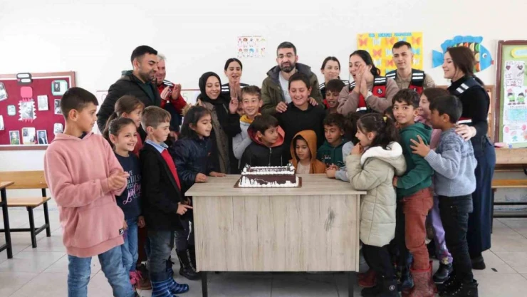 Bingöl’de İl Jandarma Komutanlığı personelleri, Sancak beldesindeki ilkokulu ziyaret ederek öğretmenlerle birlikte pasta kesti.