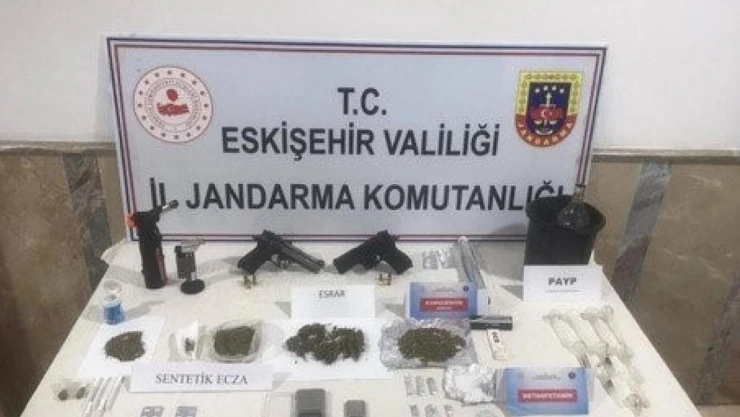 Edinilen bilgilere göre, İl Jandarma Komutanlığı ekipleri tarafından Odunpazarı İlçesi’nde ikamet eden 6 şahsın evlerinde uyuşturucu madde bulundurdukları ve satmaya çalıştıkları öğrenildi. İl Jandarma Komutanlığı’na bağlı Kaçakçılık ve Organize Suçlarla Mücadele (KOM) Şube Müdürlüğü ve Odunpazarı İlçe Jandarma Komutanlığı ekipleri tarafından şahıslara ait evlere yapılan operasyonda, 2 adet ruhsatsız tabanca, 7 adet tabanca mermisi, 54,6 gram esrar, 10 adet payp, 13,4 gram metamfetamin, 18 adet sentetik ecza hapı, 2 adet mini hassas terazi, 53,1 gram bonzai, 58 adet çarşaf kağıt ve 1 adet çalıntı motosiklet ele geçirildi.