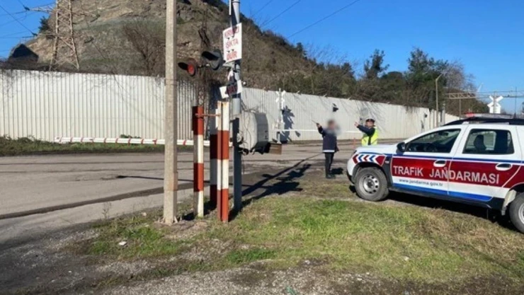 Zonguldak'ta jandarma ekipleri hemzemin geçitlerde denetim ve kontrollerini sürdürüyor.