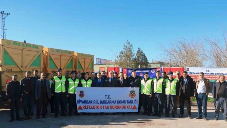 Diyarbakır İl Jandarma Komutanlığı Trafik Şube Müdürlüğü personeli tarafından traktör sürücülerine yönelik reflektör tak, görünür ol projesi hayata geçirildi.