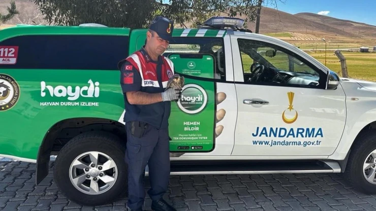 Erzurum İl Jandarma Komutanlığı emrinde görevli Çevre, Doğa ve Hayvanları Koruma Timi tarafından yaralı olarak bulunan yavru Doğan koruma altına alındı.