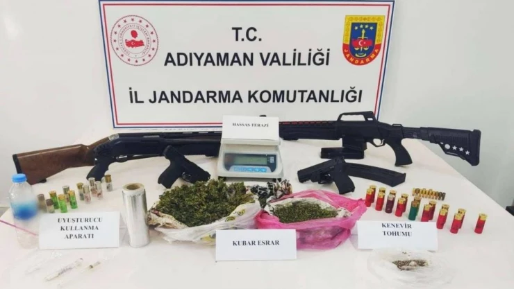 Adıyaman'da jandarma ekipleri tarafından 2 adrese yapılan operasyonda silah ve uyuşturucu ele geçirildi.