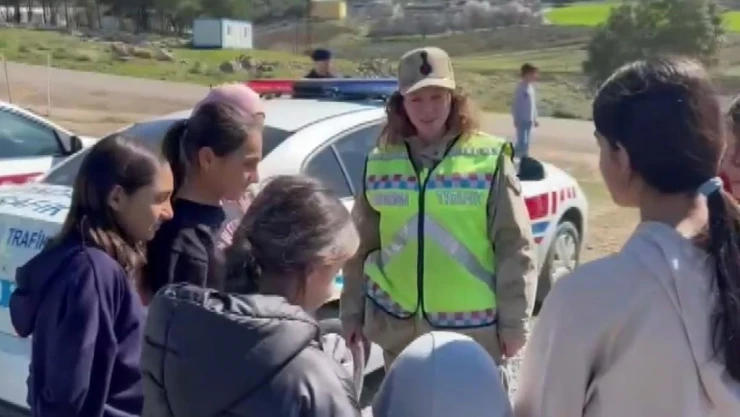 Jandarmadan depremzede çocuklara trafik eğitimi