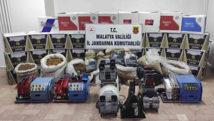 Malatya'da jandarma ekiplerince bir eve düzenlenen operasyonda çok sayıda bandrolsüz sigara ve üretimde kullanılan makineye el konuldu.