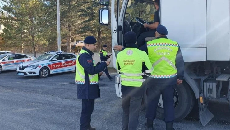 Afyonkarahisar'da jandarma ekipleri tarafından ticari araç sürücülerine yönelik gerçekleştirilen kış lastiği denetiminde kurallara uymayan 8 sürücüye 31 bin 881 TL idari para cezası kesildi.