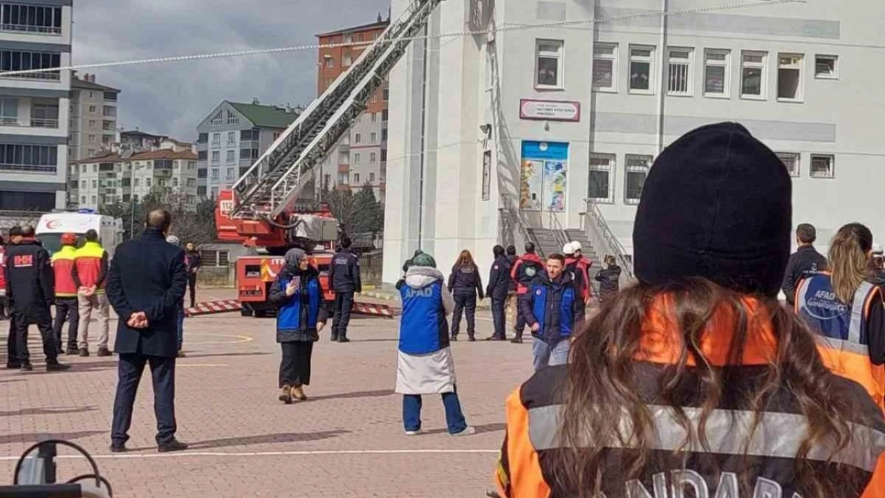 Kayseri'de Jandarma Arama Kurtarma ekipleri tarafından öğretmen ve öğrencilere Deprem Anı Tahliye ve Yangın Söndürme Tatbikatı yapıldı.
