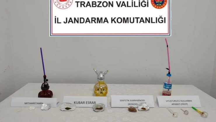 Trabzon İl Jandarma Komutanlığı ekiplerinin yapmış olduğu saha araştırmaları sonucu Ortahisar ilçesinde ikamet eden H.Y. (38) isimli şahsın ikametinde uyuşturucu ve uyarıcı madde imal ve ticareti yaptığı tespit edildi. Şüpheli şahsın ev ve eklentilerinde yapılan aramada 11 gram kubar esrar, 13 gram bonzai, 15 gram metamfetamin ve 3 adet uyuşturucu kullanma aparatı ele geçirildi. Gözaltına alınan şüpheli H.Y. hakkında adli işlemlerin sürdüğü belirtildi.