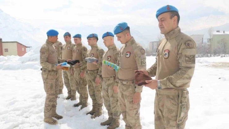 Trabzon’un Maçka ilçesine bağlı Kırantaş Mahallesi’nde yaşayan 57 yaşındaki Reyhan Kahveci, ülkenin güvenliği için karla kaplı dağlarda vatanı koruyan kış mevsiminin çetin geçtiği Hakkari İl Jandarma Komutanlığındaki kahraman jandarmalara kendi elleri ile ördüğü el emeği, göz nuru 10 adet yün bere gönderdi. Reyhan teyzenin gönderdiği bereler Hakkari İl Jandarma Komutanlığı emrinde görev yapan jandarma komandolara dağıtıldı. Jandarma ekipleri yüreklerini ısıtan hediye gönderen Reyhan teyzeye teşekkür ettiler.