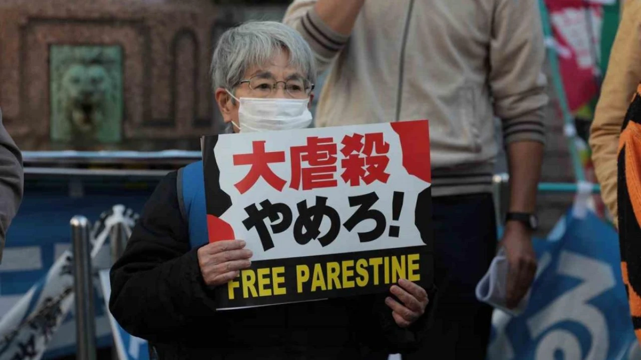 Japonya'nın başkenti Tokyo'da İsrail'in Gazze Şeridi'ne yönelik saldırıları protesto edilirken, göstericiler 'Gazze'de soykırıma son verin', Özgür Filistin sloganları attı.