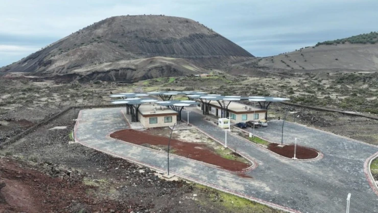 Ziyaretçi merkezini inceleyerek son durumu hakkında bilgi alan Manisa Büyükşehir Belediyesi Başkan Danışmanı Azmi Açıkdil, “Burası, Jeopark’ın karşılama alanı. Buraya gelmek isteyen ziyaretçilerimiz ister Kula evlerini gezdikten sonra isterlerse Ankara yolundan dönerek direk buraya gelebilirler. Farklı bir alana geldiklerini yansıtması açısından projeye de farklı bir görüntü sağladık. Hem yarı gölge alanlar oluşması hem de jeoparkın oluşumuyla ilgili farklı bir görüntü vermesini istedik. Gelen misafirlerimiz burada inecek, Jeopark ile ilgili bilgi alacak hatta Salihli’ye gidemeyen misafirlerimiz için de bir müzeden ziyade ufak bir sanat galerisi, sanat merkezi gibi bir alan tasarlandı. Orada da hem Salihli’yi hem de Jeopark’ın oluşumunu anlatıyoruz hem de Kula’nın tarihini ve kültürünü anlatan görüntüler yer alıyor. Ayrıca burada bir de seminer salonumuz var, orada da çeşitli eğitimler ve bilgiler verilecek. Bu alanın seçilmesinin nedeni ise hemen karşımızda Kula Divlit dediğimiz volkan konisi var ve bu volkan konisi kendi başına heyecan verici bir görüntü. Burada kafeteryamız var, misafirlerimiz geldiklerinde çay, kahve içebilecekleri, dinlenebilecekleri bir merkez olarak tasarlandı. İnşaat çalışmaları yaklaşık 1 ay önce bittiğinden dolayı ham bir görüntüye sahip ancak peyzajın tamamlanmasıyla birlikte daha renkli bir görünüme kavuşacak” dedi.