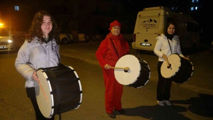 Kadın davulcular, ilk sahura vatandaşları manilerle uyandırdı