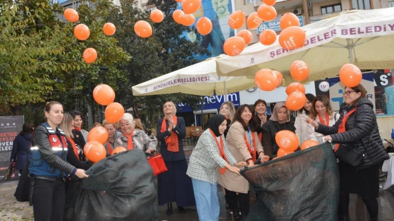 Kadına şiddete dikkat çekmek için yüzlerce balon gökyüzüne bırakıldı