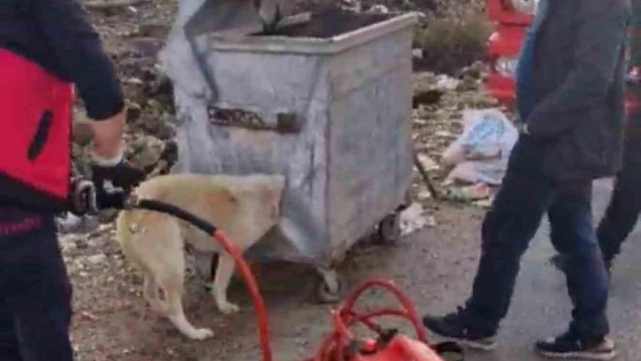 Kafası çöp konteynerine sıkışan köpek kurtarıldı