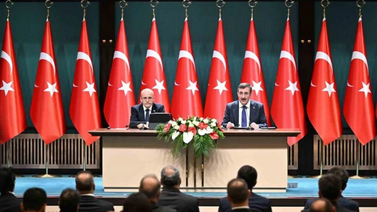 Cumhurbaşkanı Yardımcısı Cevdet Yılmaz ile Hazine ve Maliye Bakanı Mehmet Şimşek, Cumhurbaşkanlığı Külliyesi’nde "Kamuda Tasarruf ve Verimlilik Paketi"ni açıkladı.