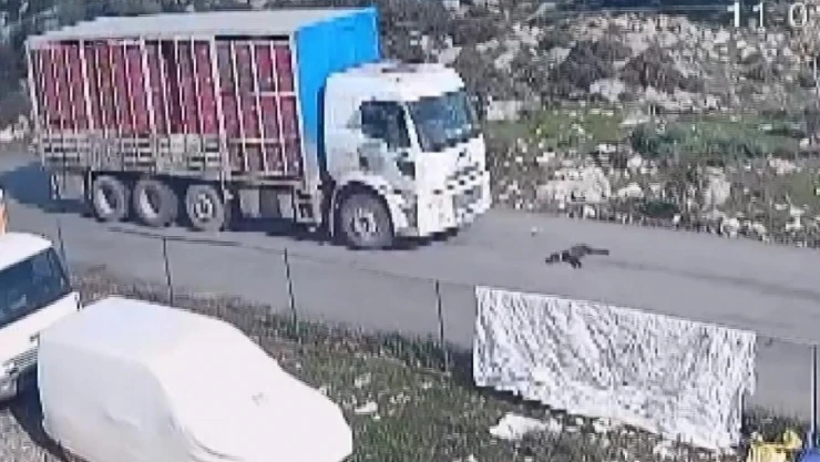 Kamyon köpeği ezdi, o anlar kameraya yansıdı