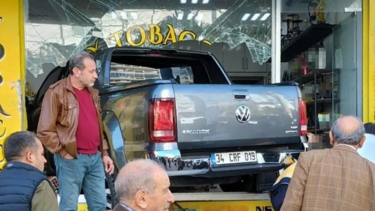 Mersin'de yoldan çıkan kamyonet kaldırıma vurduktan sonra havalanarak camı patlatıp, iş yerine daldı. Kazada 1 kişi yaralandı.