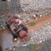 Muğla'nın Marmaris ilçesinde kamyonet kasasında taşınan iş makinesinin kayarak kanala düştüğü anlar güvenlik kameralarına yansıdı.