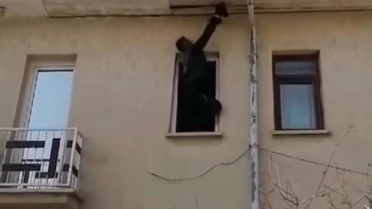 Elazığ’da kanadı çatı arasında sıkışan karga itfaiye ekipleri tarafından kurtarıldı.